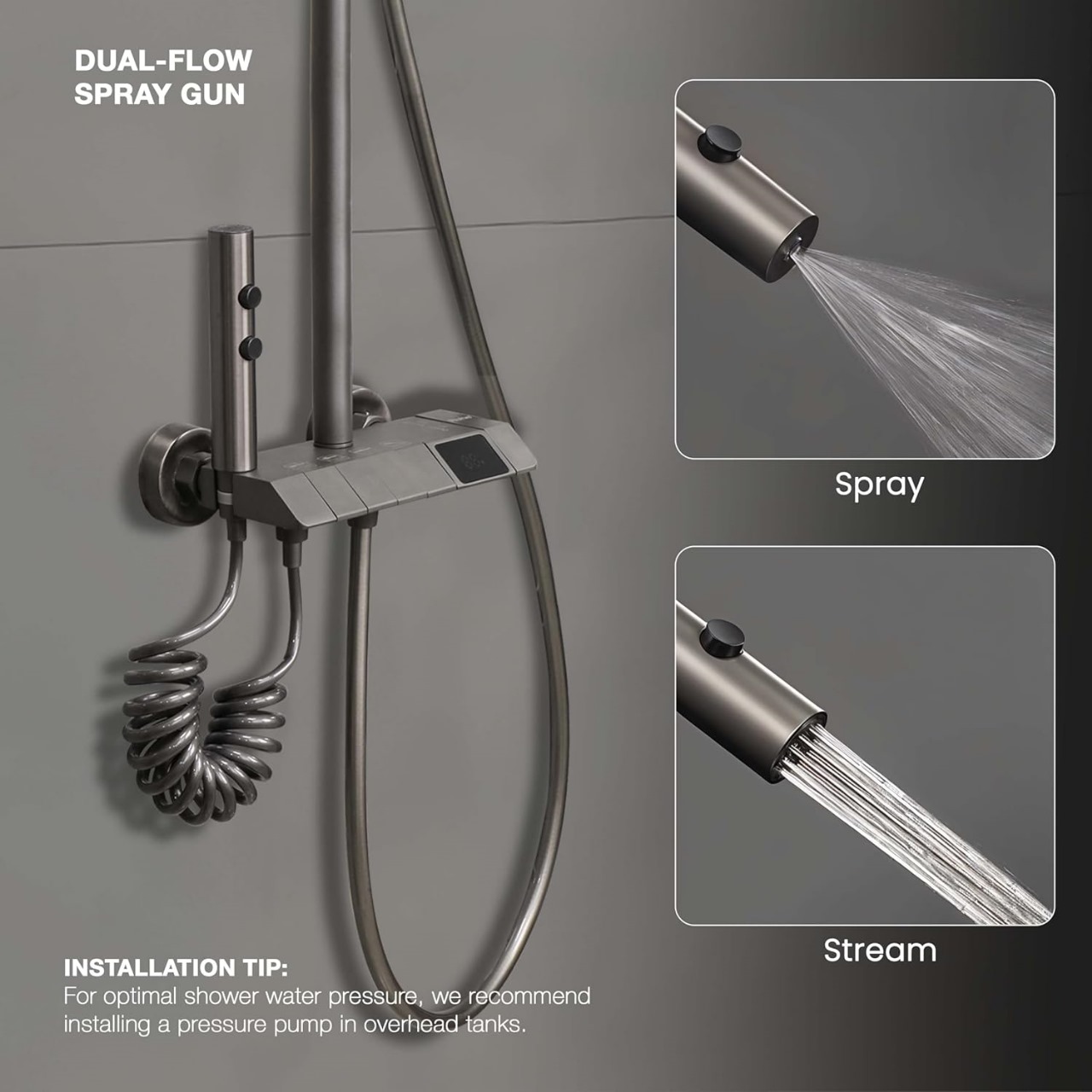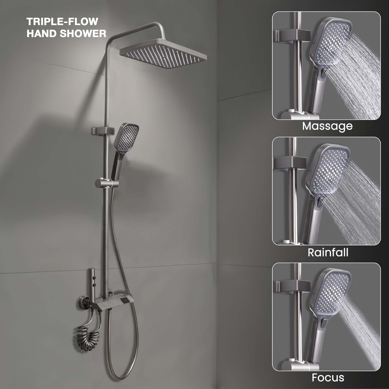Functions: Overhead Shower, Hand Shower, Dual Spray Health Faucet