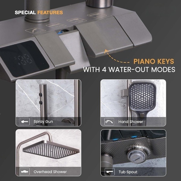 Enjoy a complete shower experience with four advanced water flow modes – overhead shower, hand shower, health faucet, and dual water spray options. Each mode is crafted to deliver a refreshing and customizable bathing experience.
